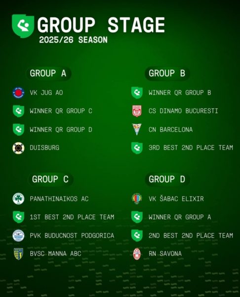 Οι «πράσινοι» κληρώθηκαν στον Γ΄ Όμιλο και έχουν για αντίπαλο την Μπούντουτσνοστ (Μαυροβούνιο), τη Μάνα (Ουγγαρία) και αναμένουν τον τρίτο αντίπαλο που θα προκύψει από τα προκριματικά.